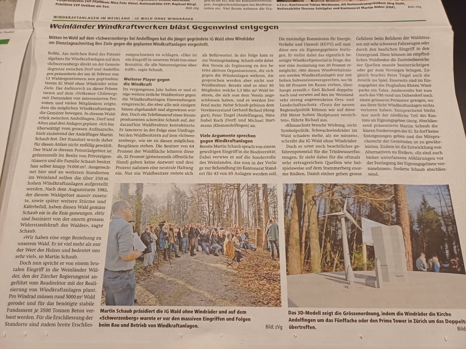 Artikel Andelfinger Zeitung vom 27.3.2024 zum Pressetermin