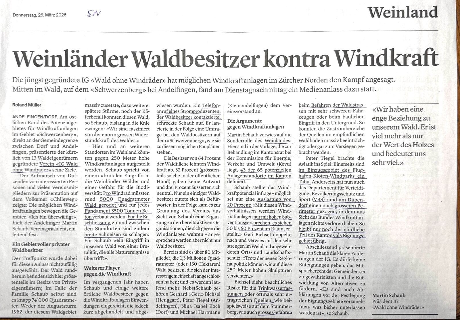 Artikel Zürcher Bote vom 27.3.2026 zum Pressetermin